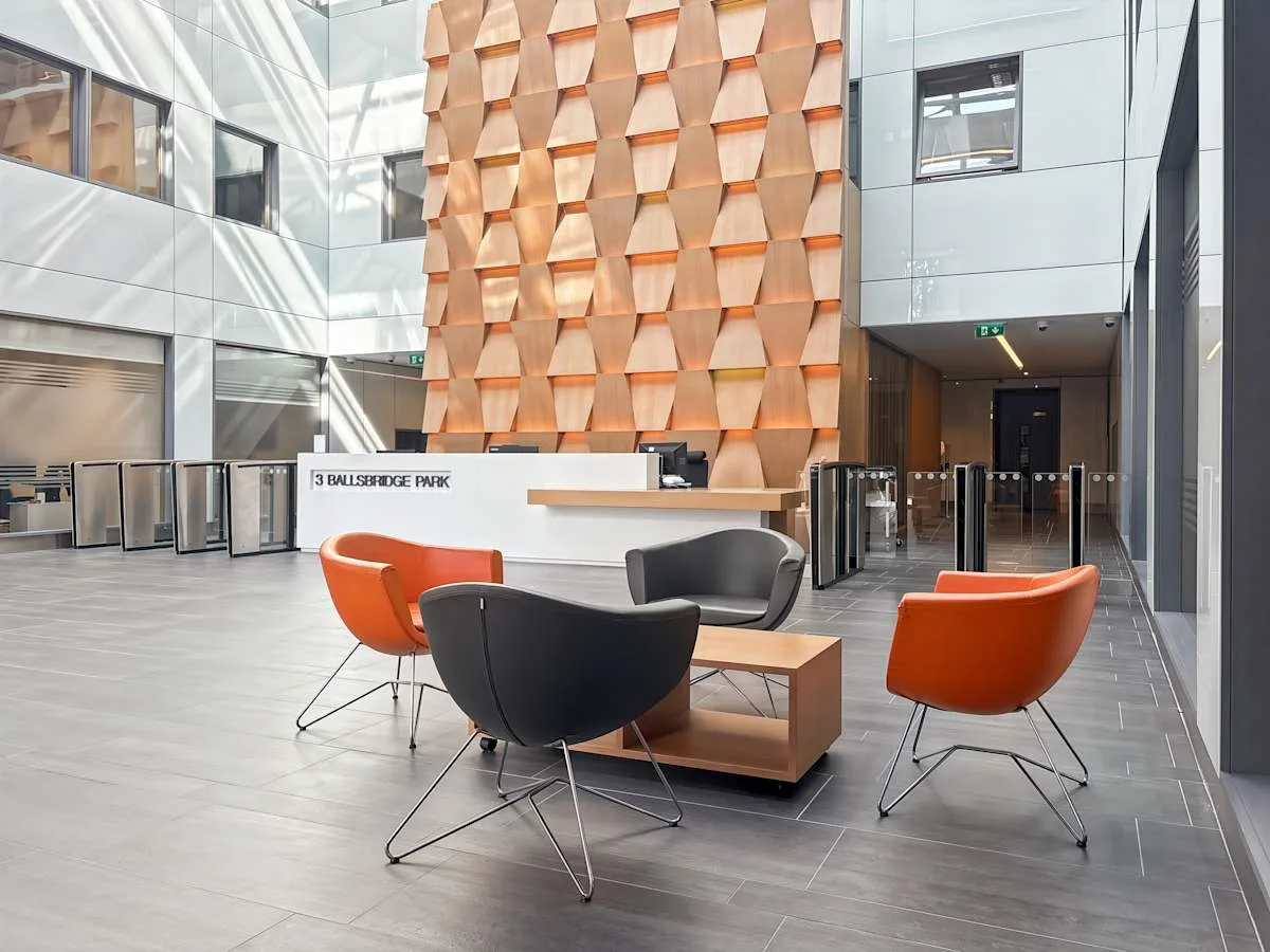 Greet your guests in the vast central atrium before hosting a meeting in a contemporary space with views of Aviva Stadium to the north. The beautiful gardens of Herbert Park are just a short walk across the River Dodger.