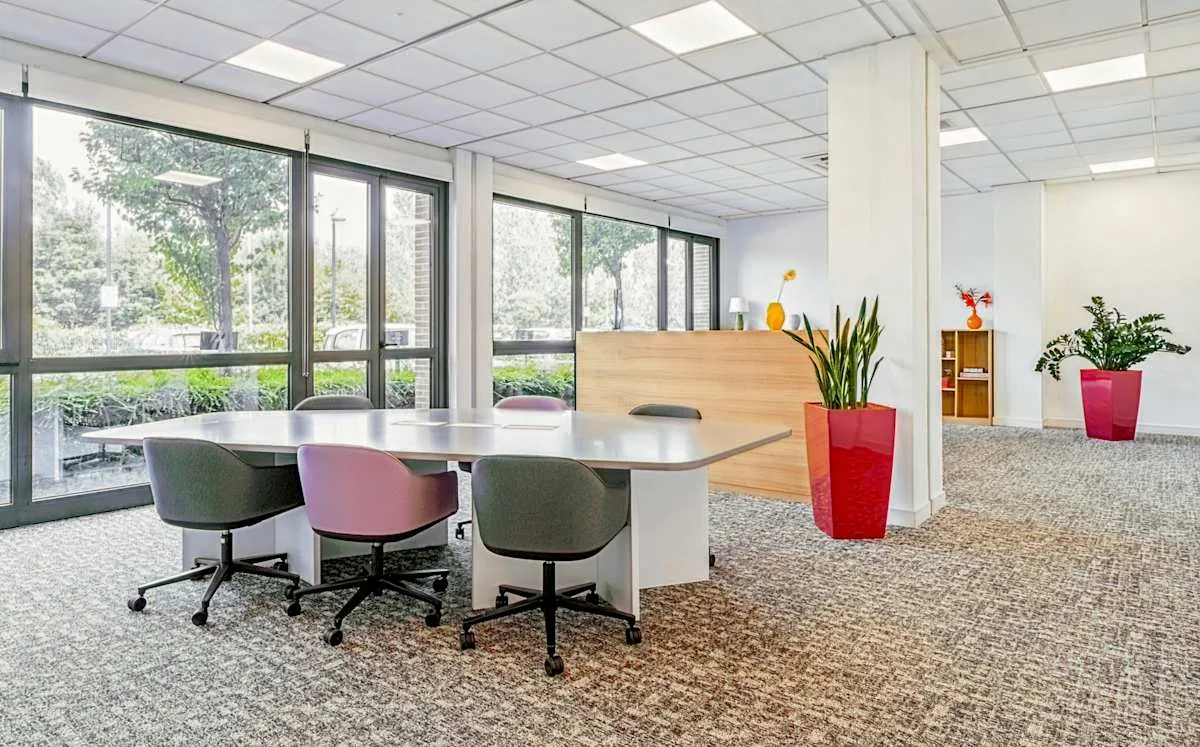 Work productively in bright spaces, then when you take a break you’re next door to La Meridiana’s 50 shops, restaurants, a gym and cinema.