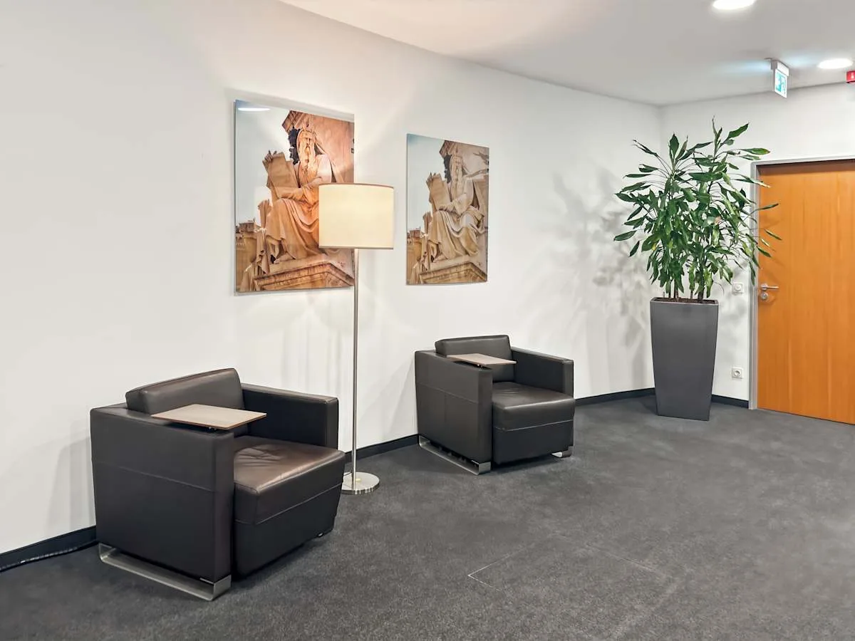 Realise your business ambitions at our flexible coworking office space in Dusseldorf. Neuer Zollhof is a prominent landmark, designed by renowned architect Frank Gehry and famous for its complex of three separate buildings with curved, leaning facades. Located at Dusseldorf Medienhafen, an urban quarter of the city, the Neuer Zollhof sits on the banks of the Rhine, giving you waterside views while you work. Get to and from the office easily, with “Franziusstrasse” transit stop a short eight-minute walk away. Need to travel internationally or welcome guests from further afield? Dusseldorf International Airport is 10km from the office – just 23 minutes by car.